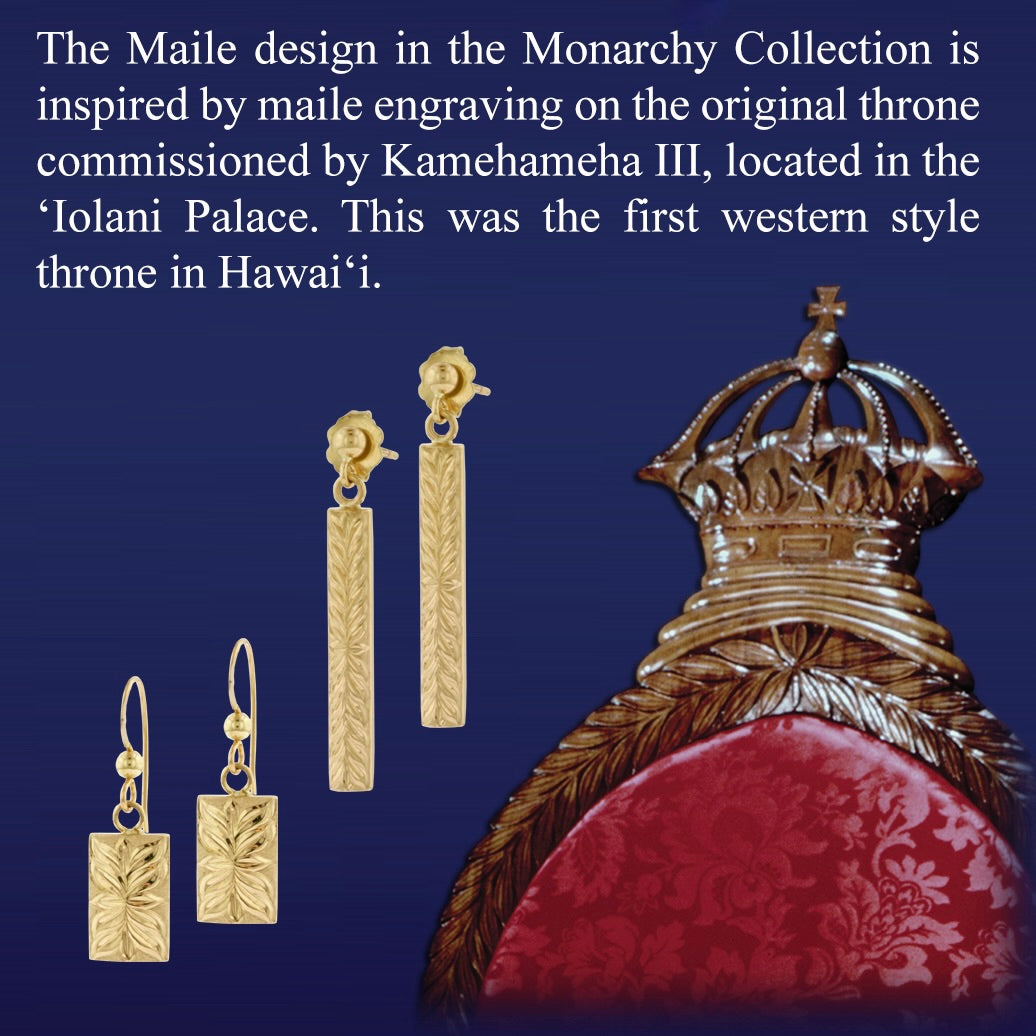 Barrel, 8mm wide bangle bracelet with Iolani Palace Maile design on polka dot background with one Iolani Palace Image. Inside inscription includes laser image of Iolani Palace.