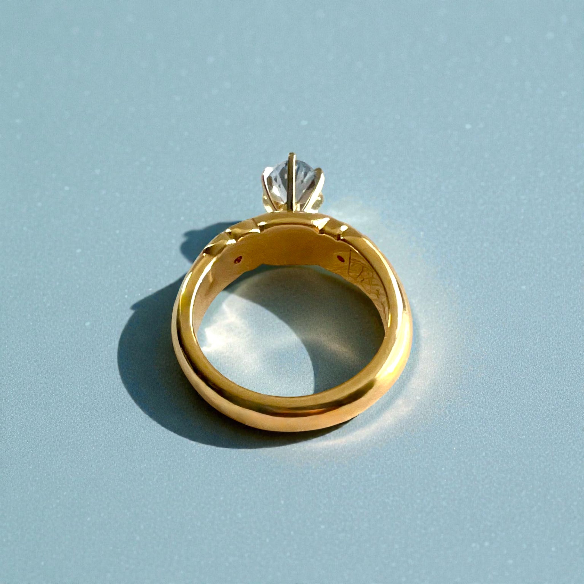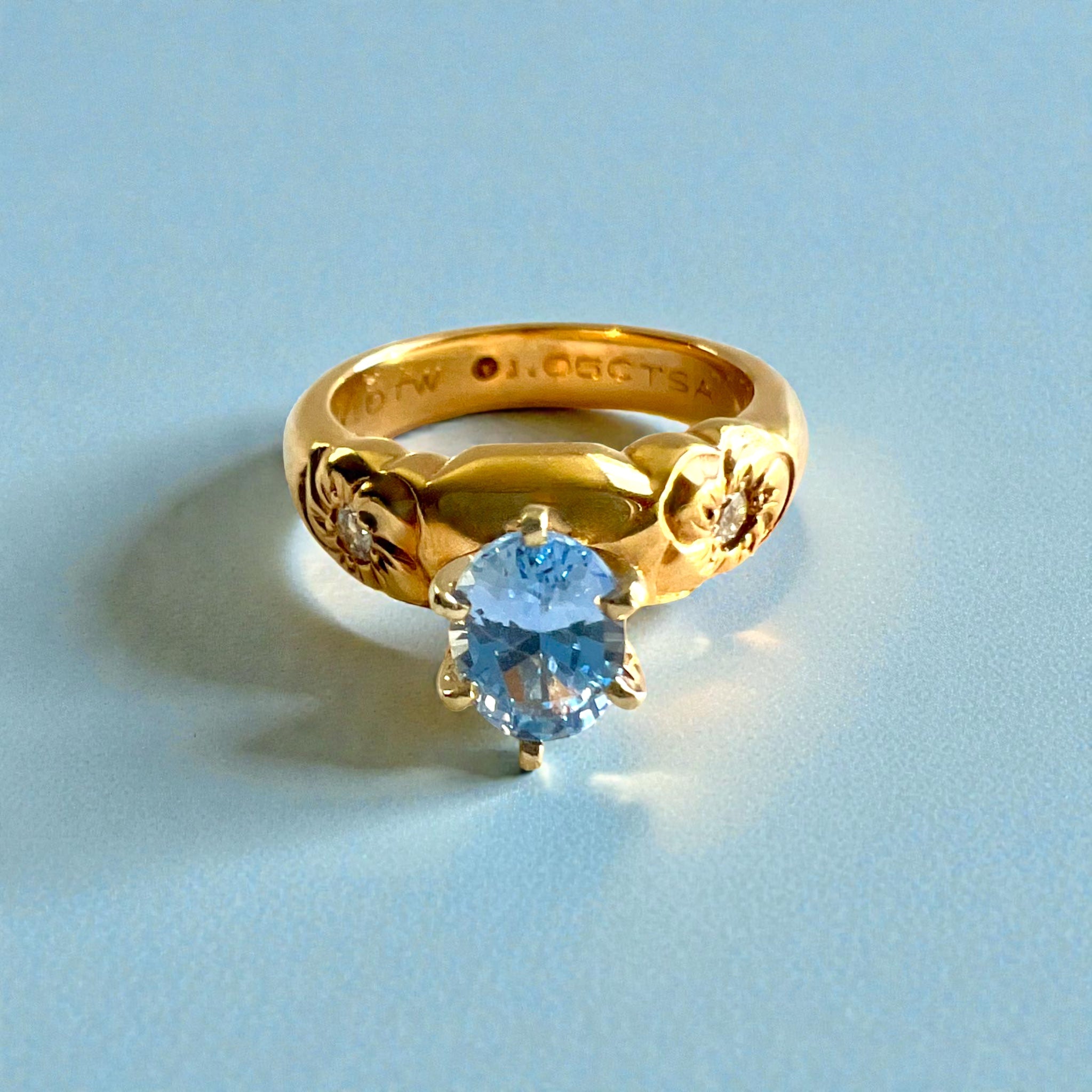 Palau Plumeria Ring w/ 1.05ct Light Blue Sapphire & Diamonds in 14K Yellow Gold