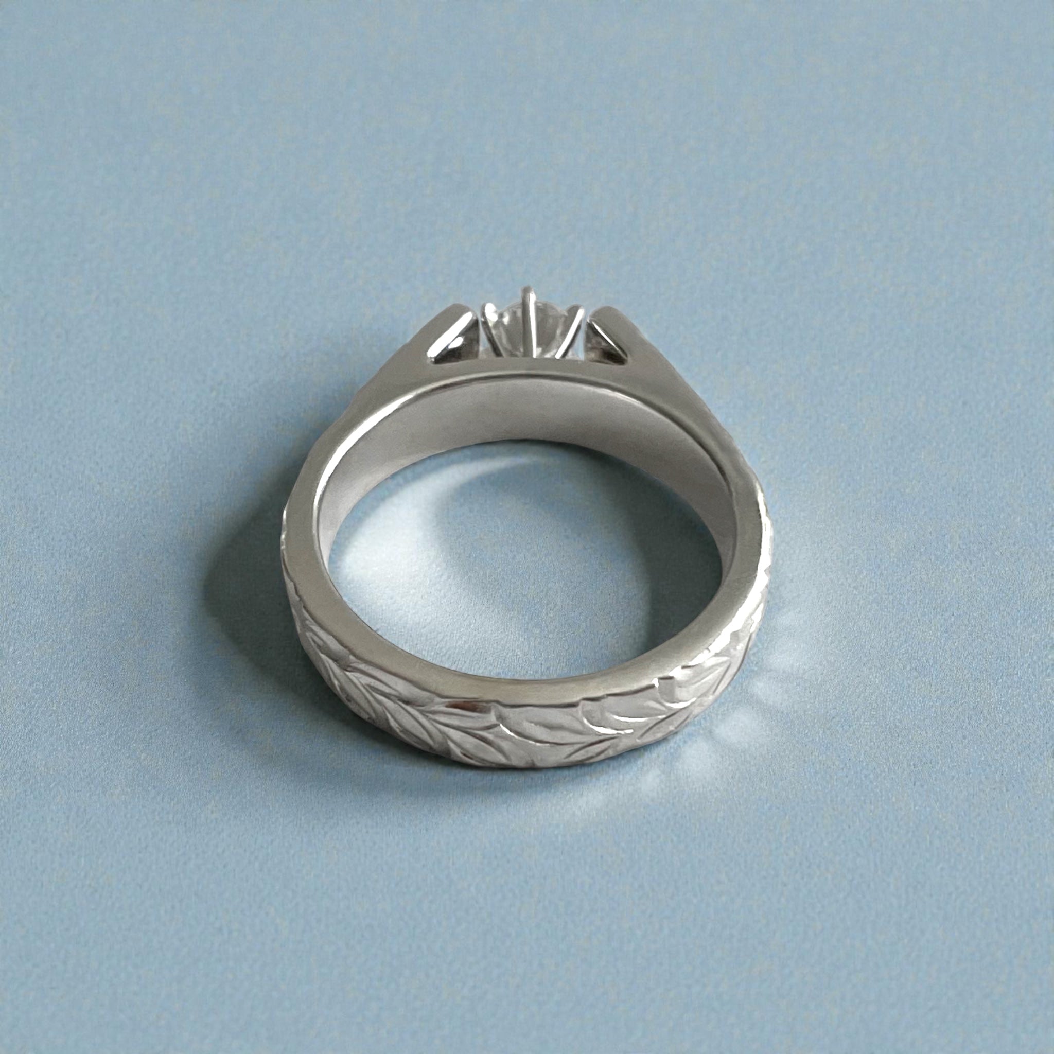 Flat, 4mm wide ring. Shiny Maile and 2x Hibiscus design with 4.4mm Cubic Zirconia (the size of Cubic Zirconia corresponds to approximately .30ct Diamond).
