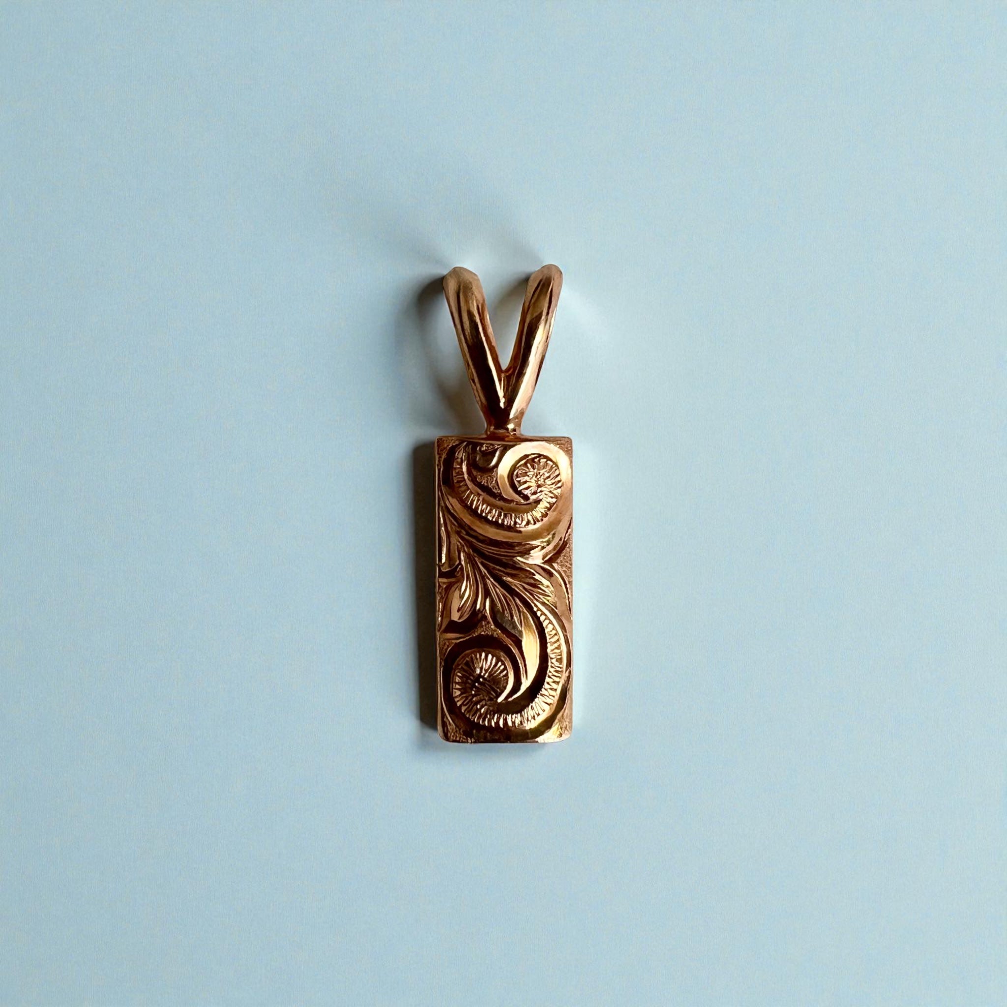 Old English Engraved 6mm x 1/2" Pendant in 14K Yellow or Pink Gold