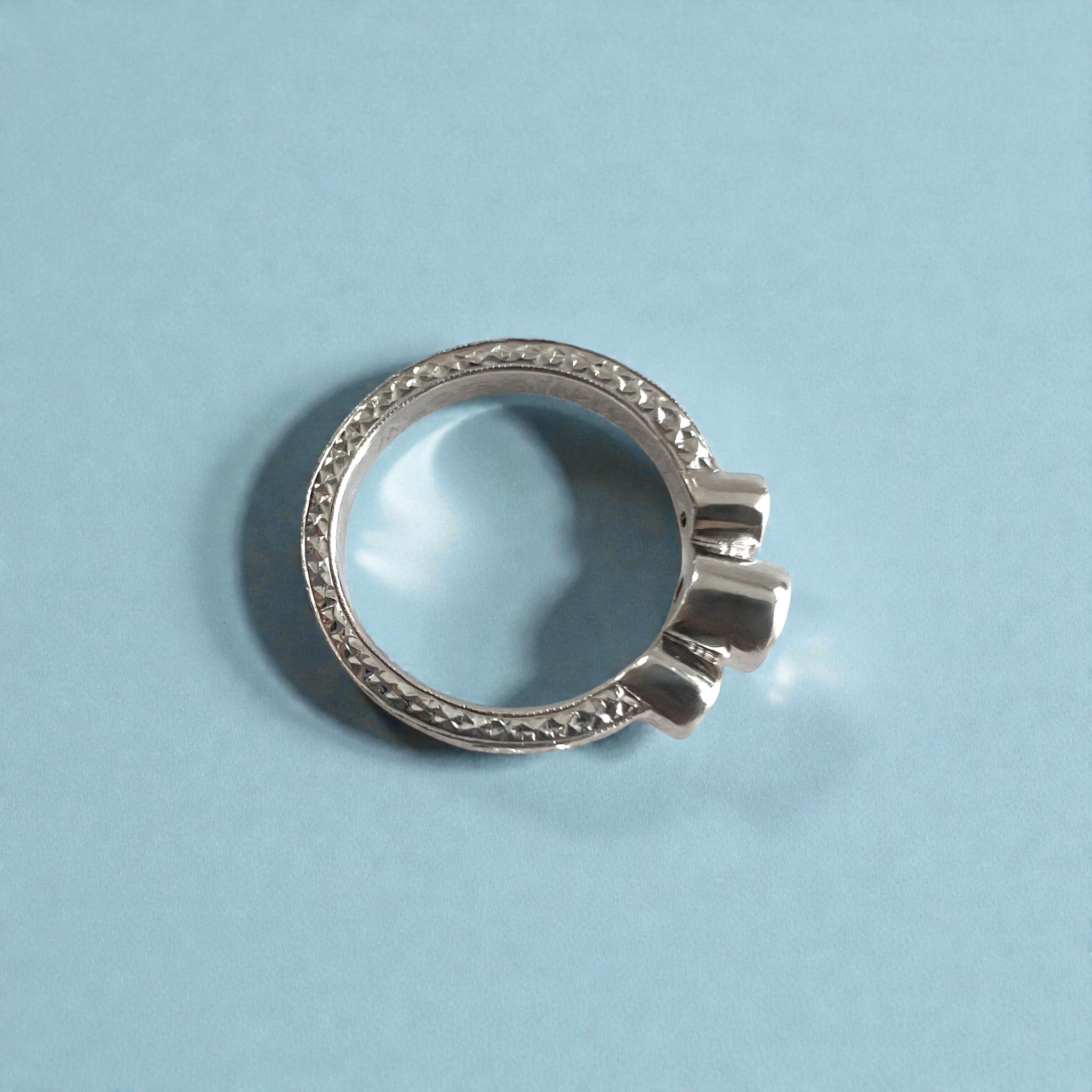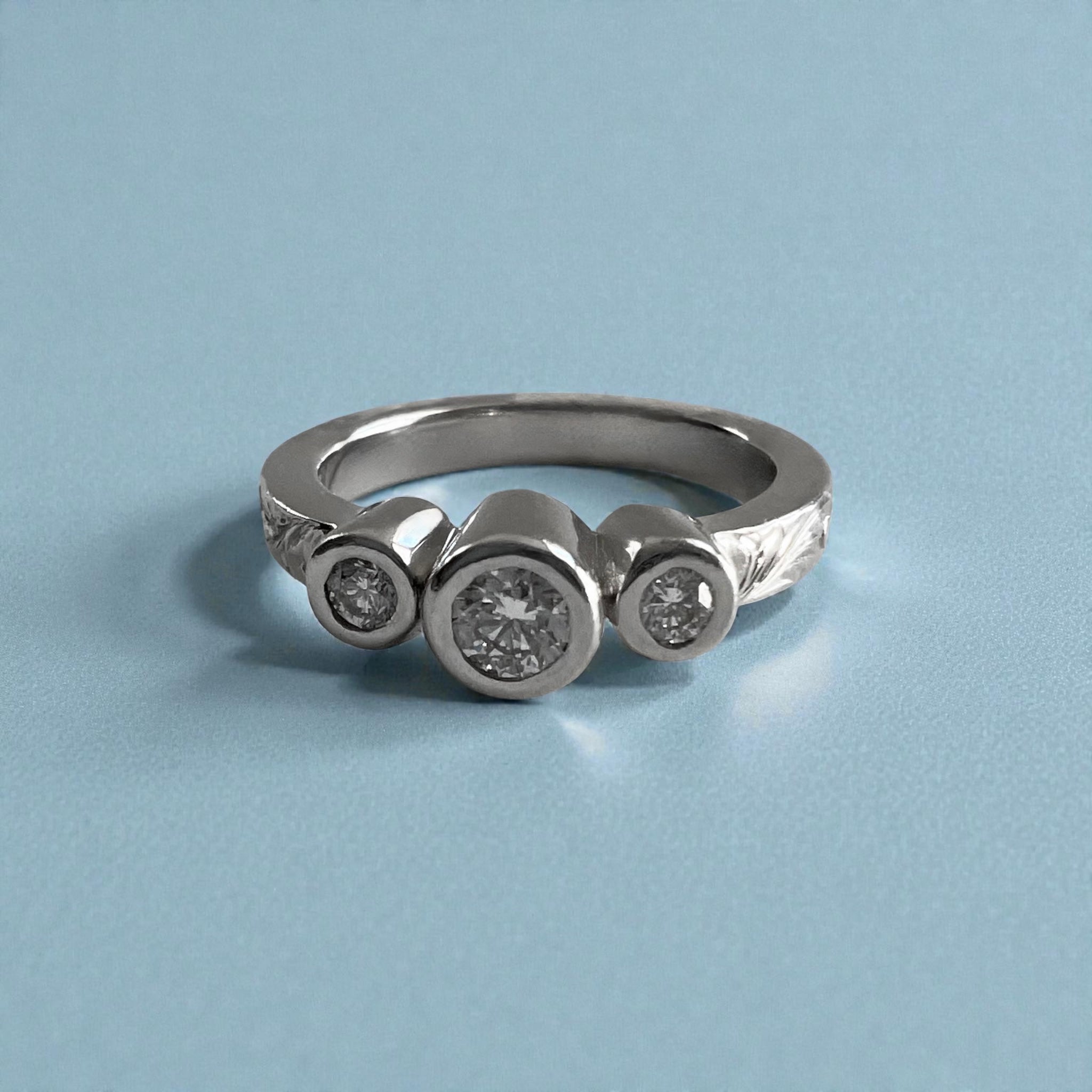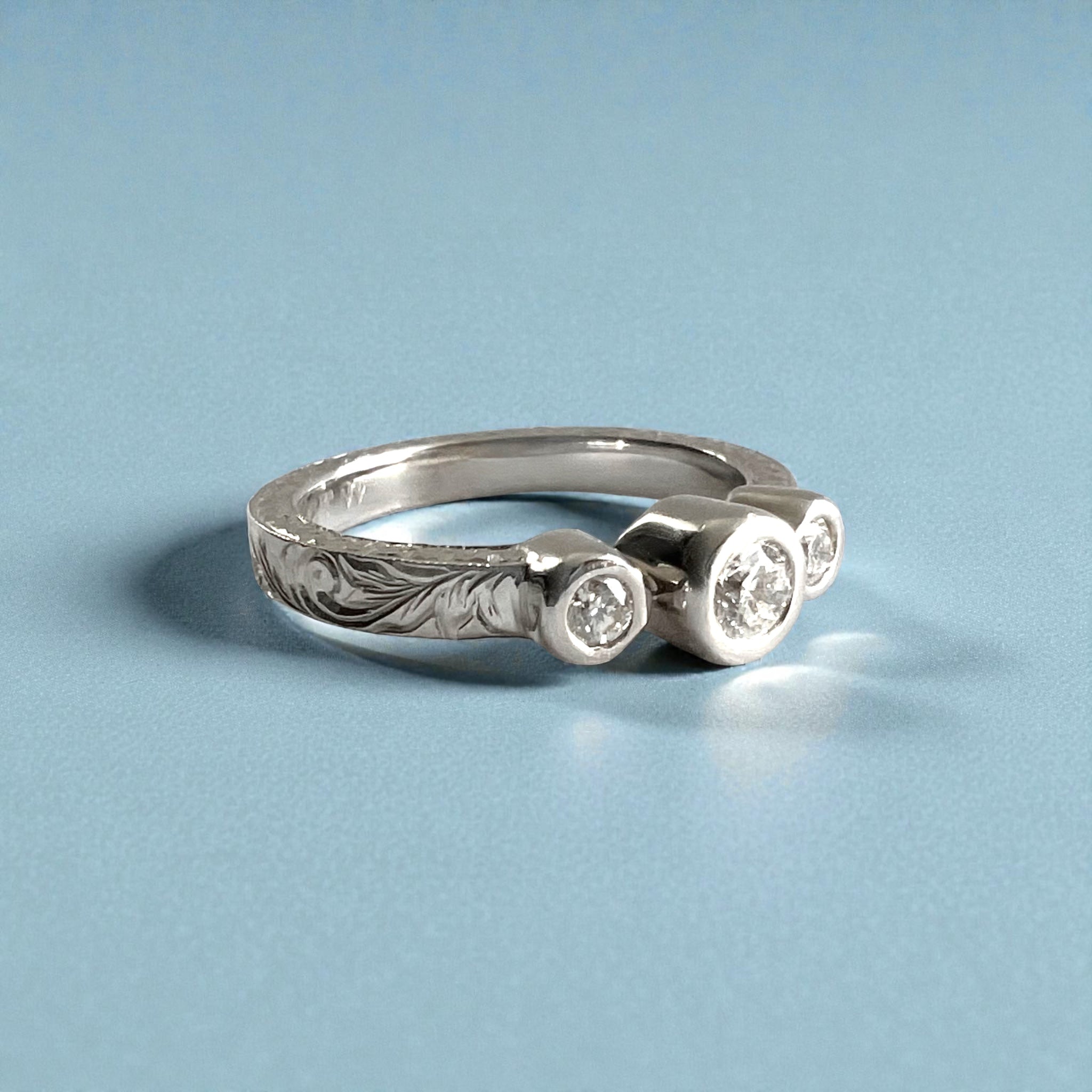Palau 3mm Old English Flat Ring w/ Three Bezel Set Diamonds in 14K White Gold