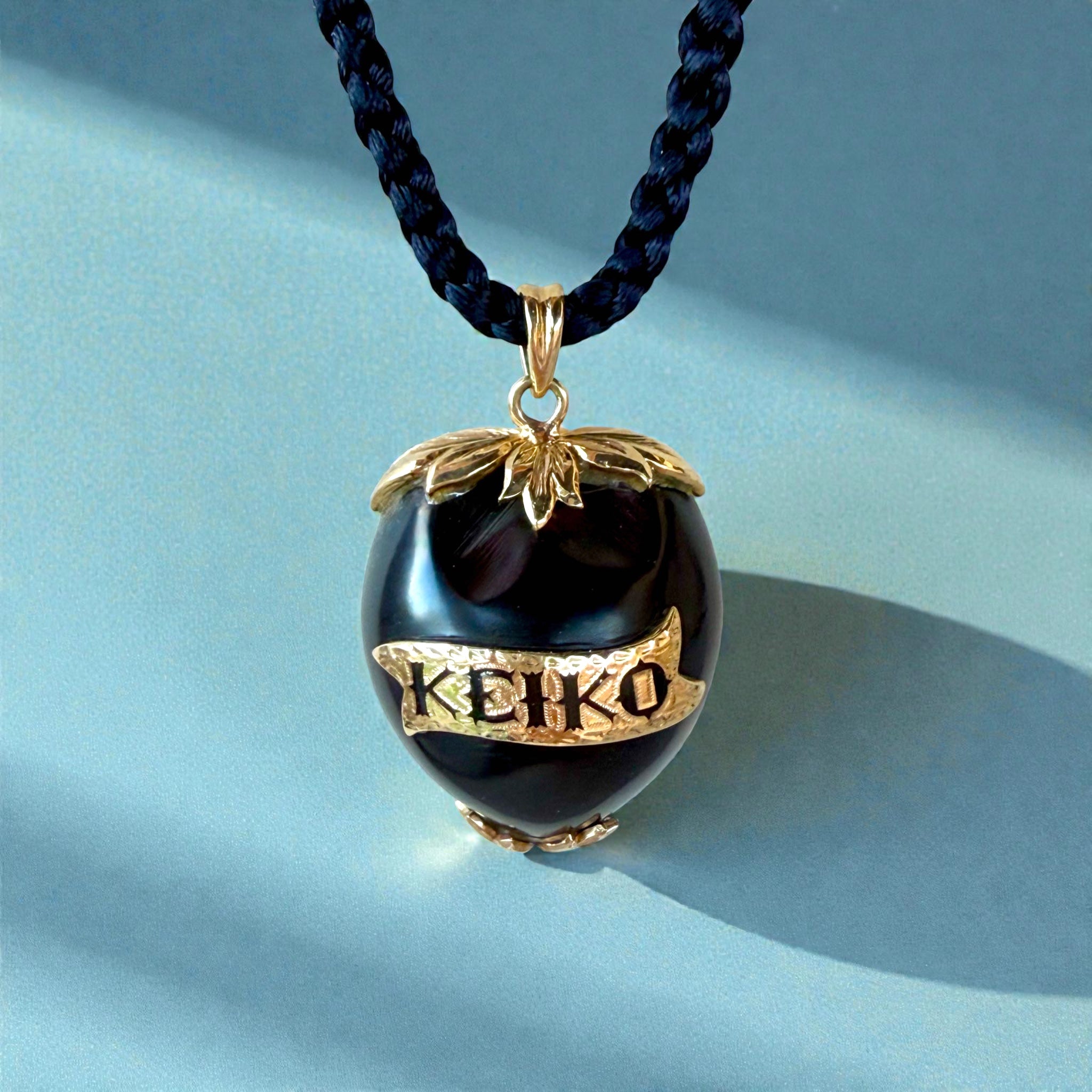 Kukui Nut Pendant with "Keiko" in 14K Yellow Gold. Approximately 23.7mm wide. 18" braided cord included.