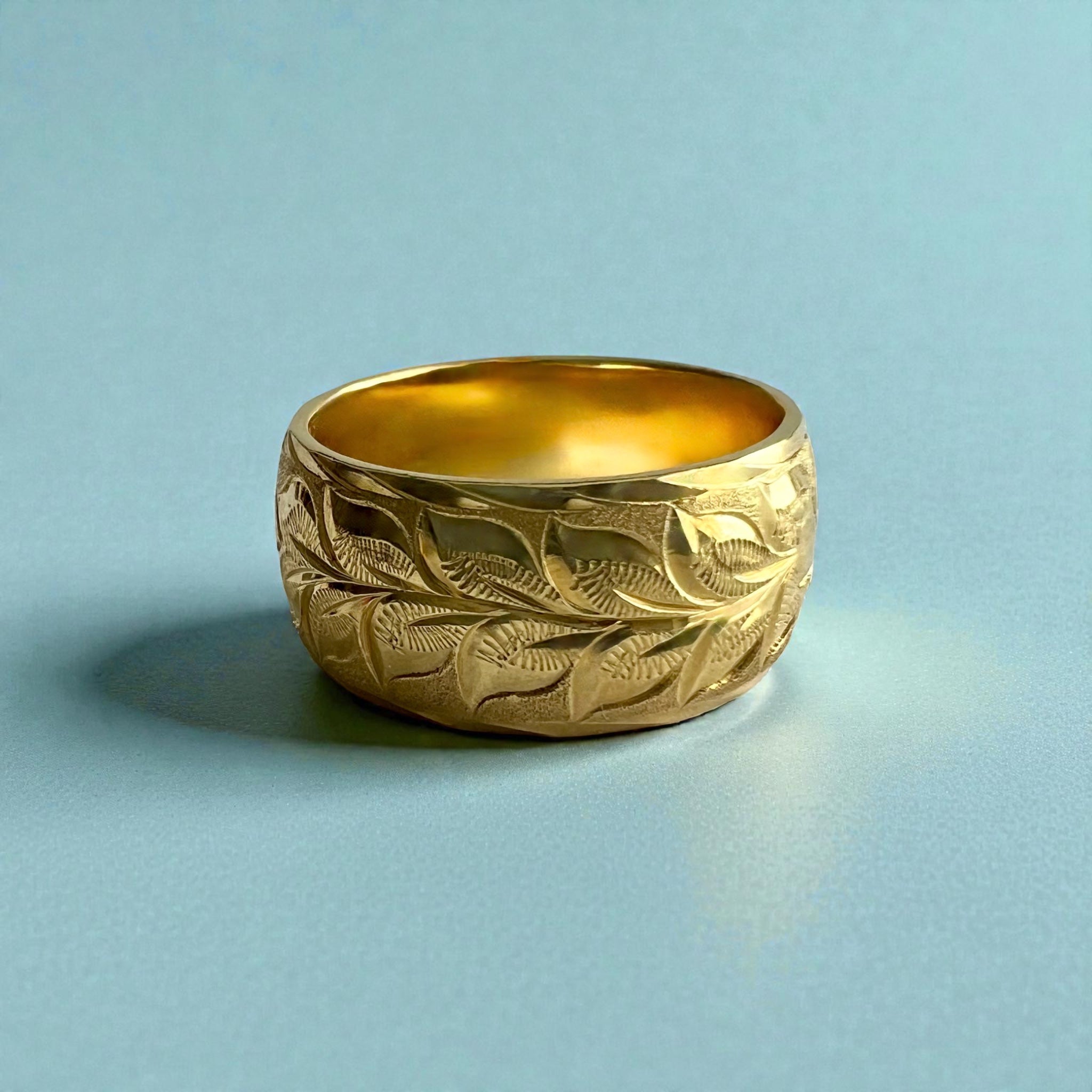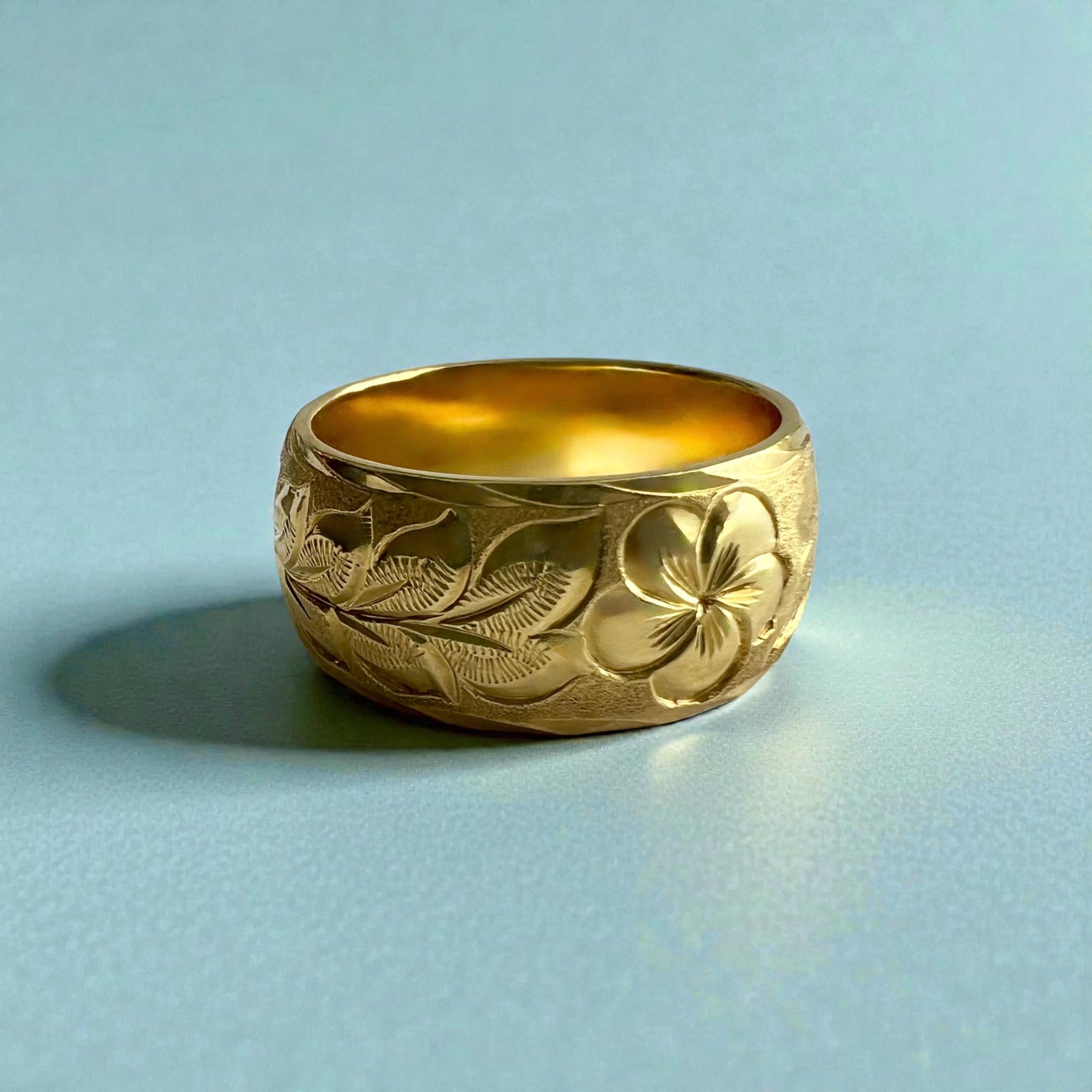 Maile & Plumeria 10mm Ring in 18K Green Gold