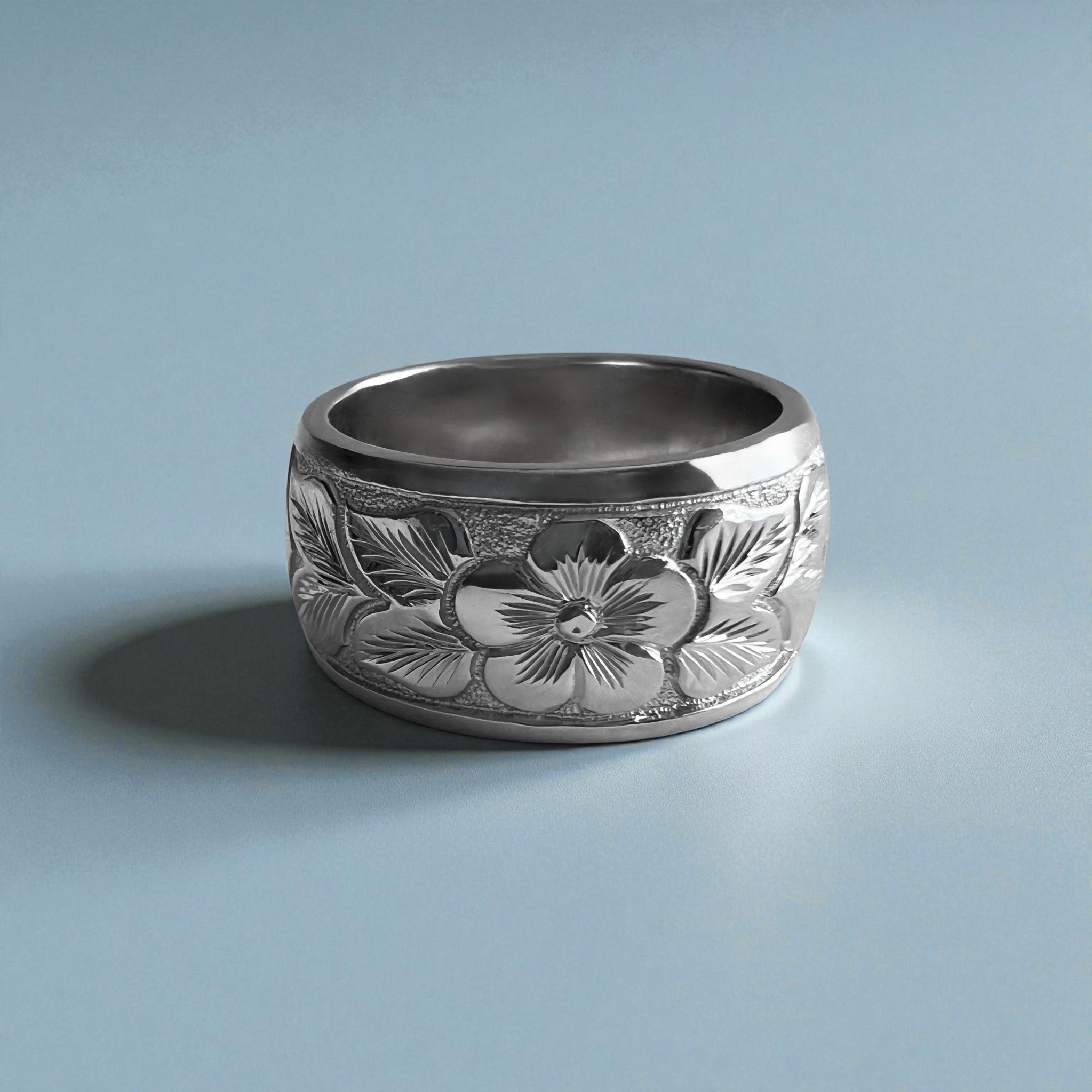 Raised Maile & Plumeria 10mm "Kuuipo" Ring in 14K White Gold