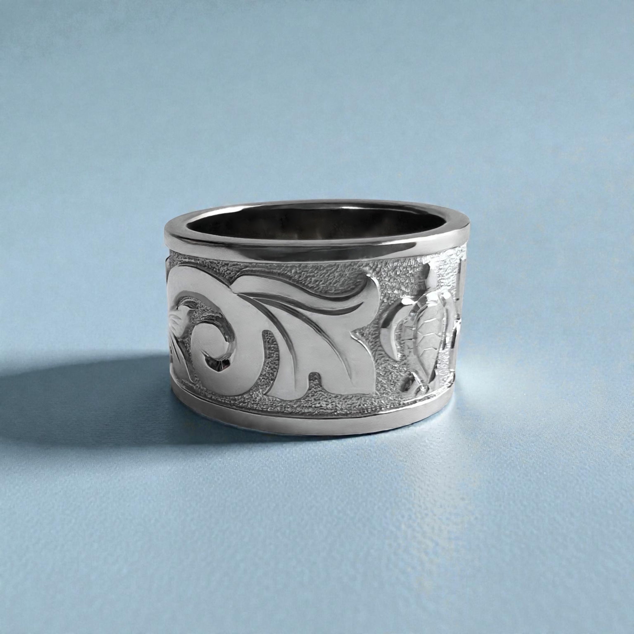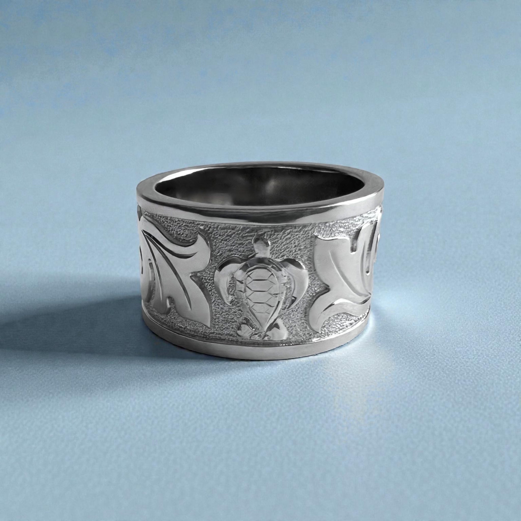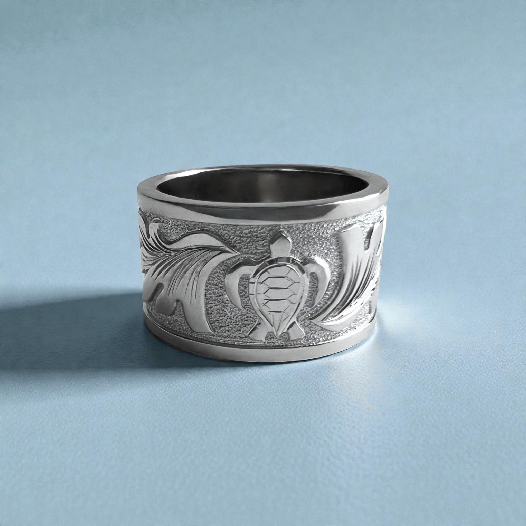 Raised Turtle w/ Old English 12mm Ring in 14K White Gold